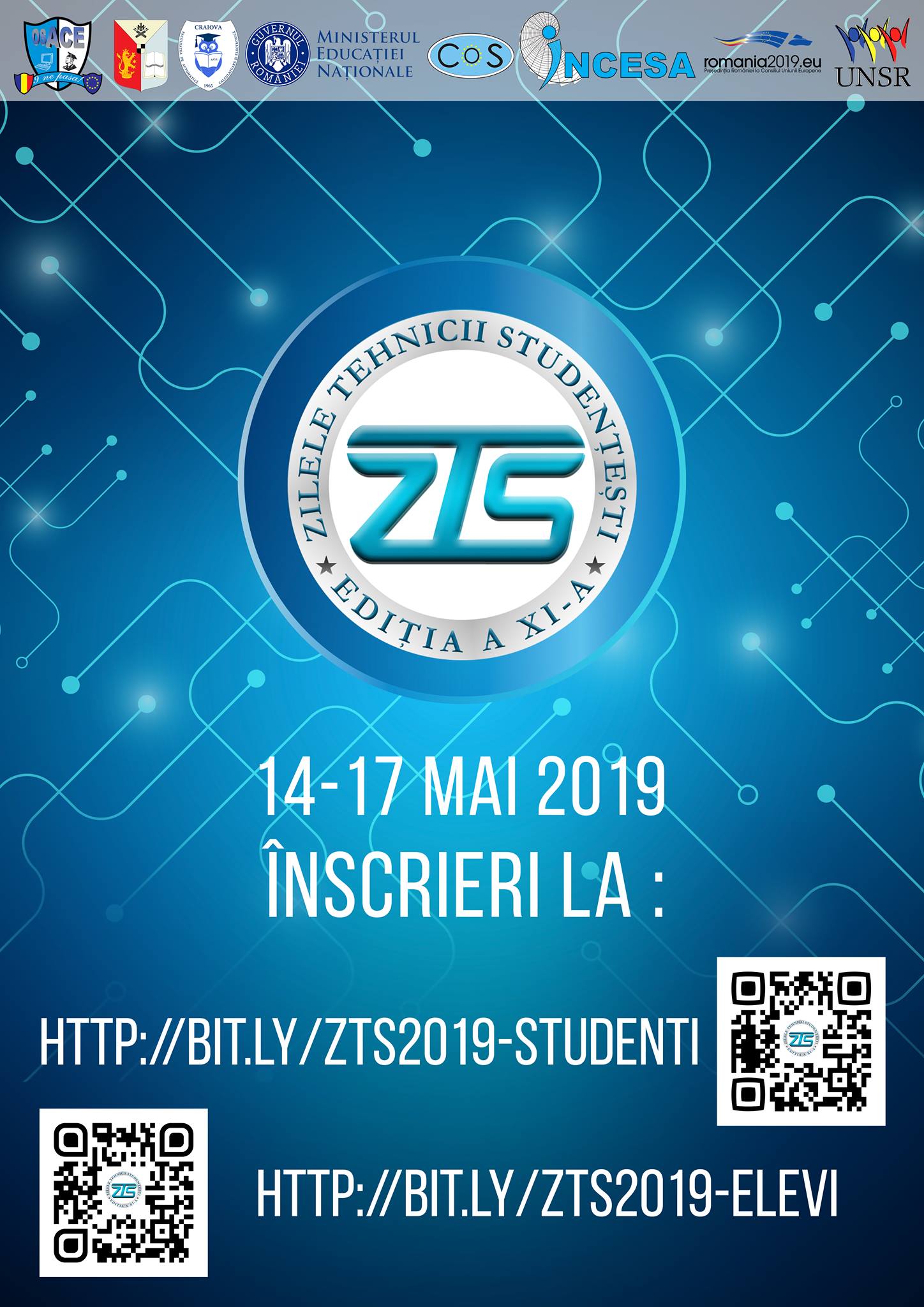 Organizaţia Studenţilor din Facultatea de Automatică, Calculatoare şi Electronică (O.S.A.C.E.) împreună cu Universitatea din Craiova, Facultatea de Automatică, Calculatoare şi Electronică din Craiova, Convenția Organizațiilor Studențești, Infrastructura de Cercetare în Științe Aplicate (INCESA) și Uniunea Națională a Studenților din România organizează Simpozionul național „Zilele Tehnicii Studenţeşti”, ediţia a XI-a.