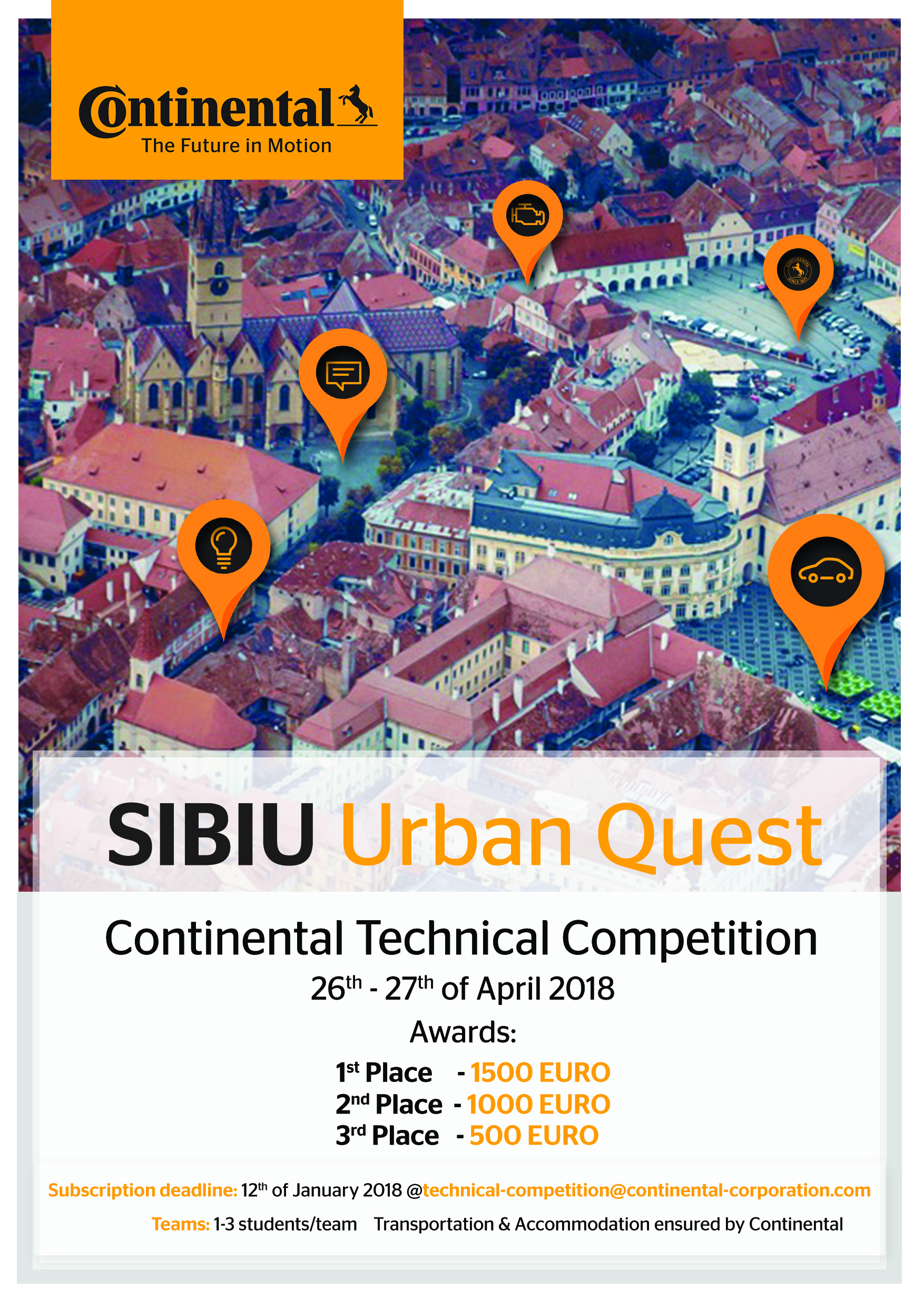 Continental Technical Competition - Sibiu Urban Quest va avea loc in 26 - 27 Aprilie 2018 la Sibiu.